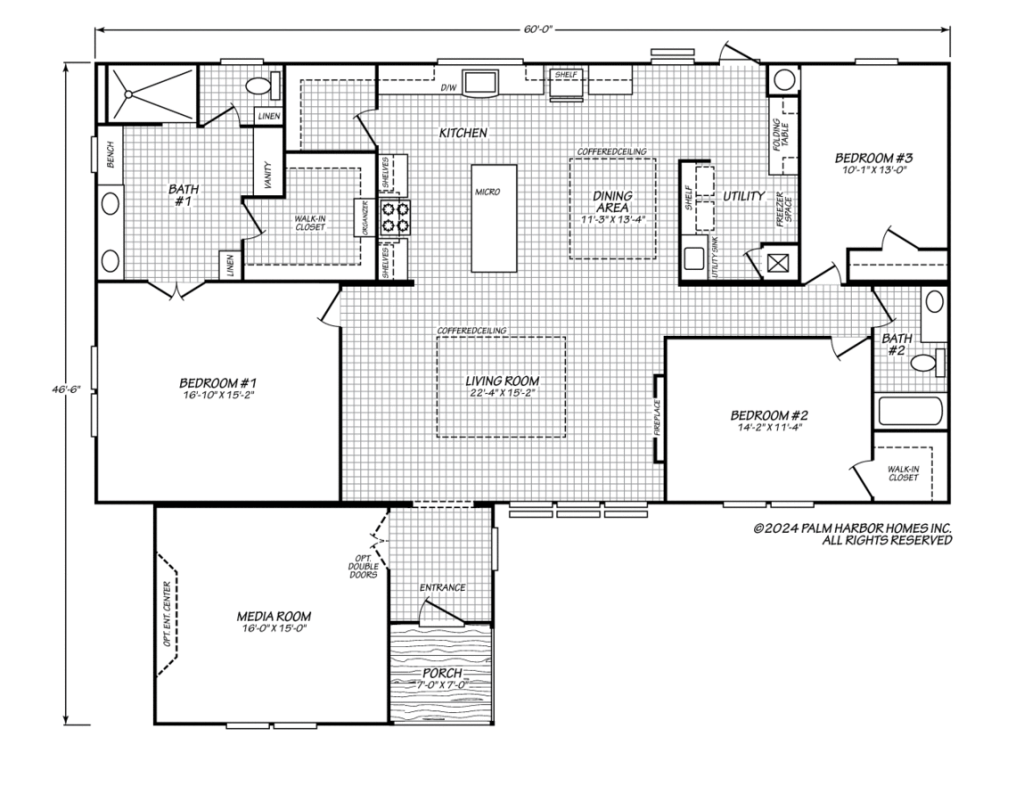 • Dimensions: 46′6″ x 60′