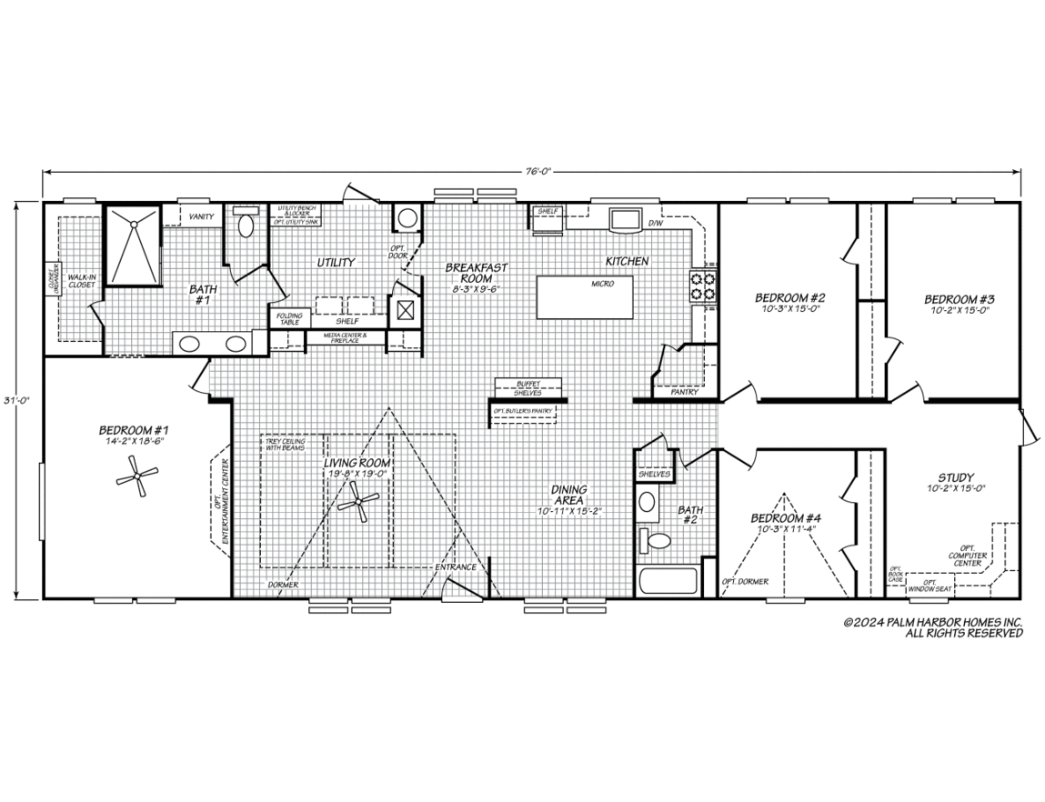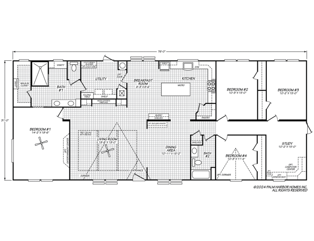 Dimensions: 76′ x 31′